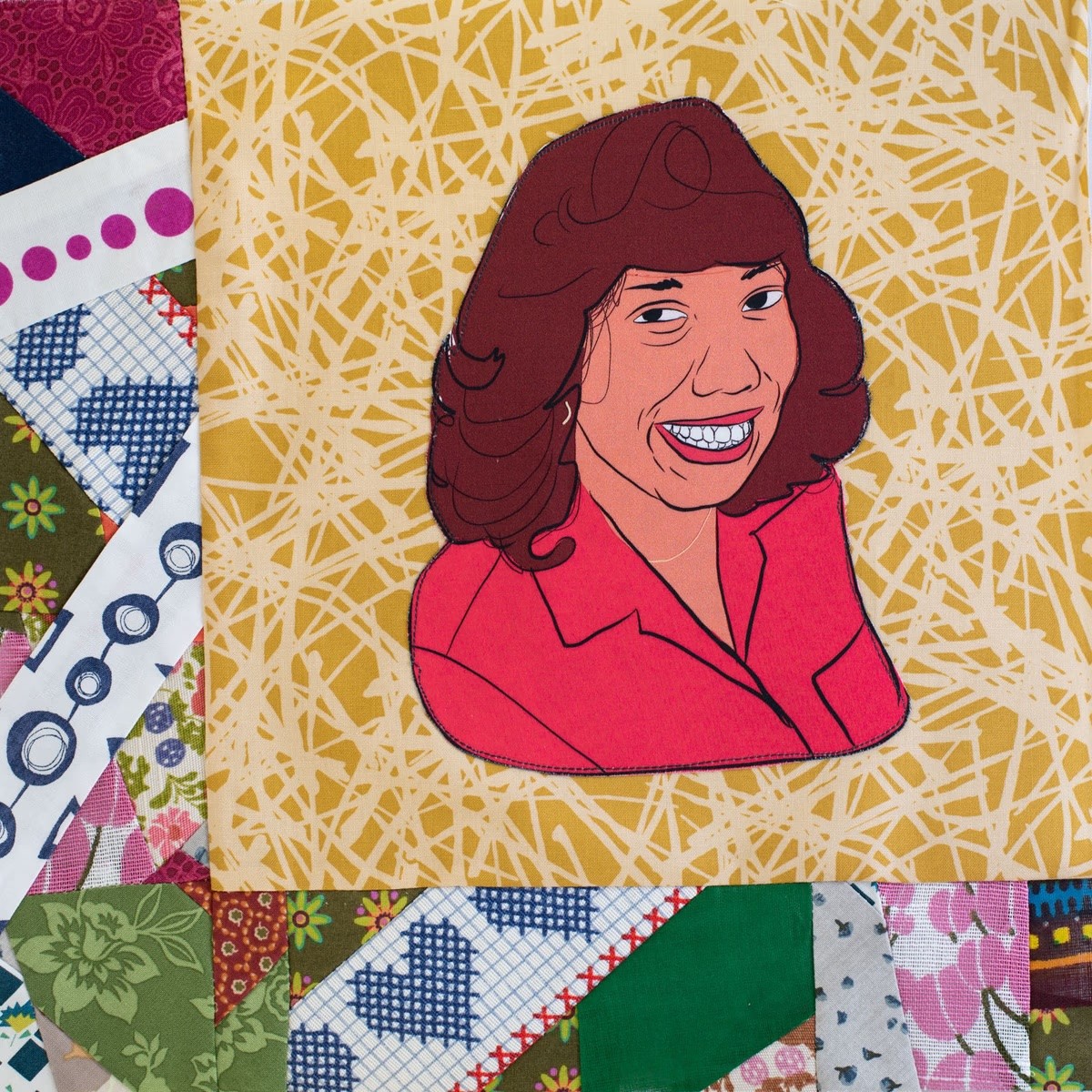 The African/American: Making the Nation’s Table exhibition Advisory Board—28 of the country's most distinguished scholars, writers, chefs, and food and drink producers—was tasked with coming up with names of iconic figures and noteworthy moments in African American food culture. Those for the contemporary period were easier to add and discover; individuals and items for the 17th, 18th, 19th, and early 20th centuries were more daunting; the curatorial team began to research African American’s more profound food history and came up with more names and concepts and contributions, and the list grew. The culmination of this research was vetted by Dr. Scott Barton alongside Dr. Jessica B. Harris, the exhibition’s lead curator. Noted graphic designer Adrian Franks created 400 illustrations, which were printed onto fabric, then skillfully cropped, and appliquéd onto their respective quilt block by artists. Writer Osayi Endolyn was tasked with amplifying and verifying the biographies and creating a series of brief synopses that would be used to inform visitors about the quilt’s contents.