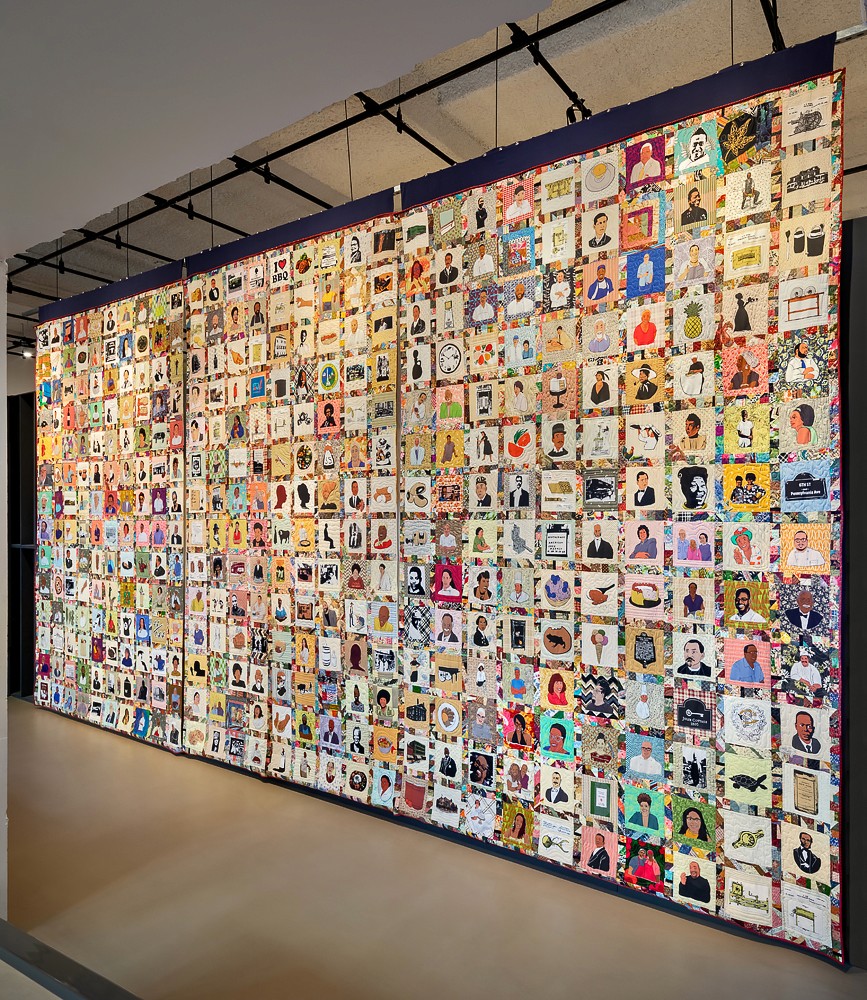 The Legacy Quilt honors the countless African American food and drink producers who have laid the foundation for American cuisine. The tradition of quilts in African American culture runs deep, quilts have long been associated with expressions of celebration, remembrance, and respect. Commissioned by MOFAD and created by Harlem Needle Arts for MOFAD's 2022 African/American: Making the Nation's Table exhibition, the Legacy Quilt is a handmade quilt composed of 406 blocks, each one representing one African American contribution to American cuisine. Standing at 14 feet tall and nearly 30 feet wide, this awe-inspiring object makes a powerful point: there are countless stories that deserve recognition.