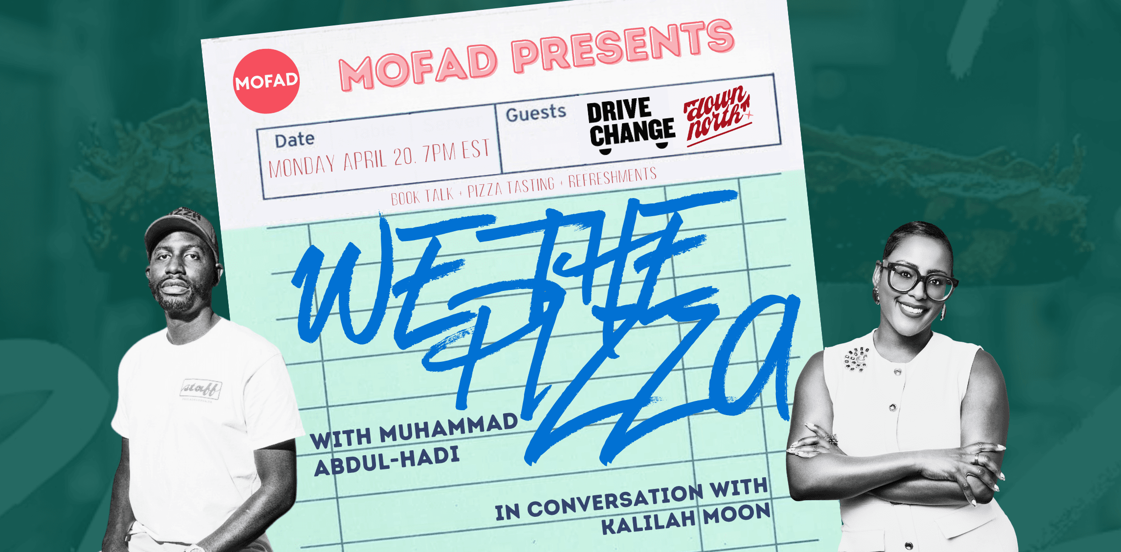 Join MOFAD as we host Down North Pizza Founder and We the Pizza author, Muhammad Abdul-Hadi. Muhammad will be in conversation with Kalilah Moon, CEO of Drive Change, an organization that reimagines opportunities for justice-involved youth by providing culinary and hospitality training. Come for Down North Pizza’s signature pies, stay for a meaningful discussion on second chances and how hospitality is a tool for creating communities of opportunity and care that we deserve.