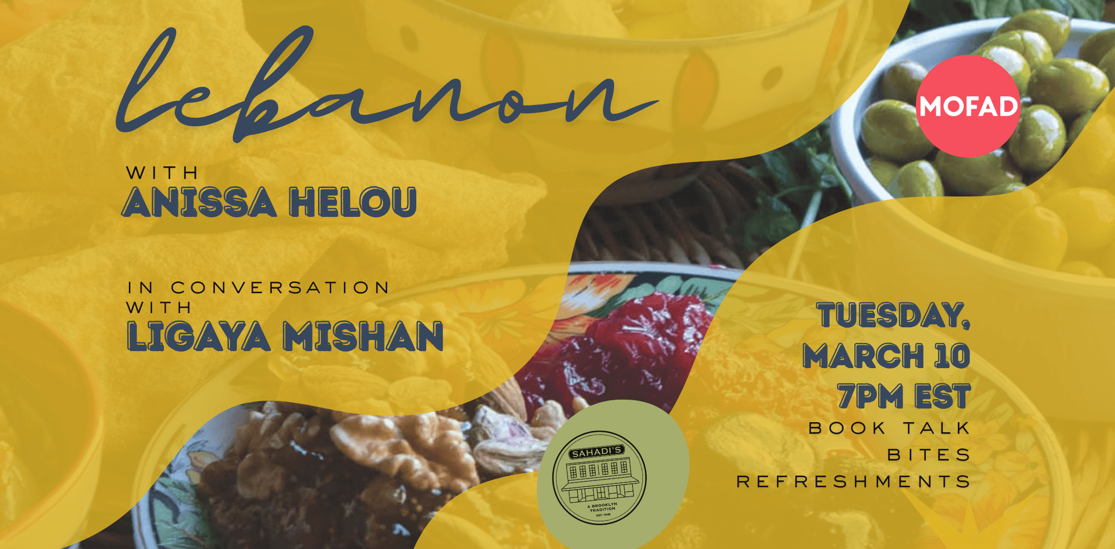Join MOFAD as we celebrate James Beard Award–winning author Anissa Helou and her eleventh book, Lebanon: Cooking the Foods of My Homeland. In conversation with food writer and restaurant critic Ligaya Mishan, Helou will take us on a journey to her late mother’s home country and the place she grew up for a deep look at the country’s culinary history and culture. She’ll share the beauty and diversity of Lebanon’s regional cuisines alongside family stories and reflections.
